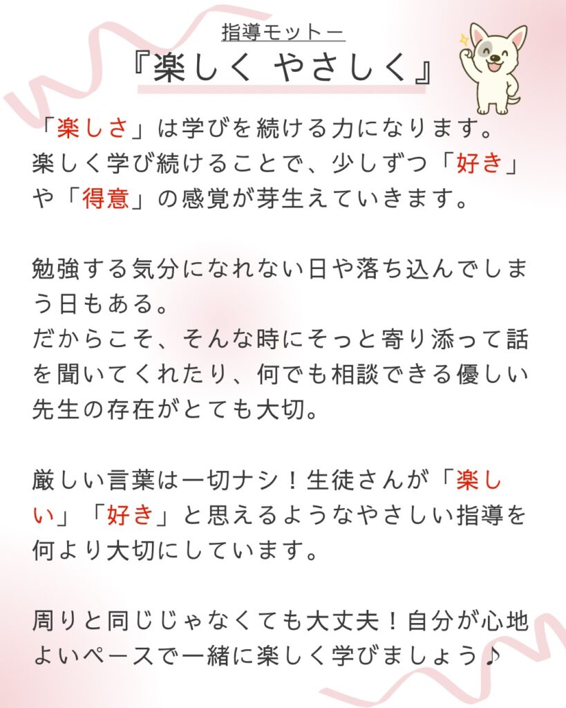 ◎ 安心できるやさしい先生と一緒に学ぶ